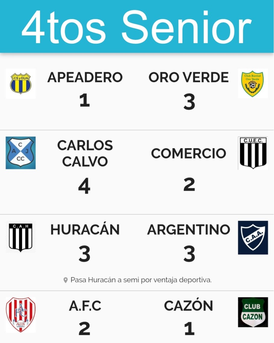 Atucha le ganó 5 a 0 a Comercio en primera eliminándolo del torneo clausura. En Reserv, Apeadero derrotó 4 a 0 al Churro. Comercio también perdió en Senior, 4 a 2 frente a Carlos Calvo. AFC venció a Cazón en Senior y clasificó a semifinales
