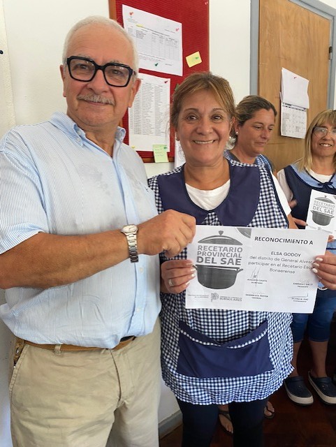 Cuatro Auxiliares de Educación de General Alvear, fueron reconocidos el pasado miércoles 14 de enero, por el Gobierno de la Provincia de Buenos Aires y el Concejo Escolar de General Alvear. Carmen Guadalupe Pigñuelo, María Antonela Urruchua, Rita Elizabeth Boetto y Elsa Sofía Godoy, cuando estuvieron trabajando en la Escuela Primaria 27, prepararon un rico Salpicón que posteriormente fue incluido en el Recetario Bonaerense del Servicio Alimentario Escolar, siendo en la actualidad uno de las comidas que se come en todas y cada una de las Escuelas que cuentan con SAE