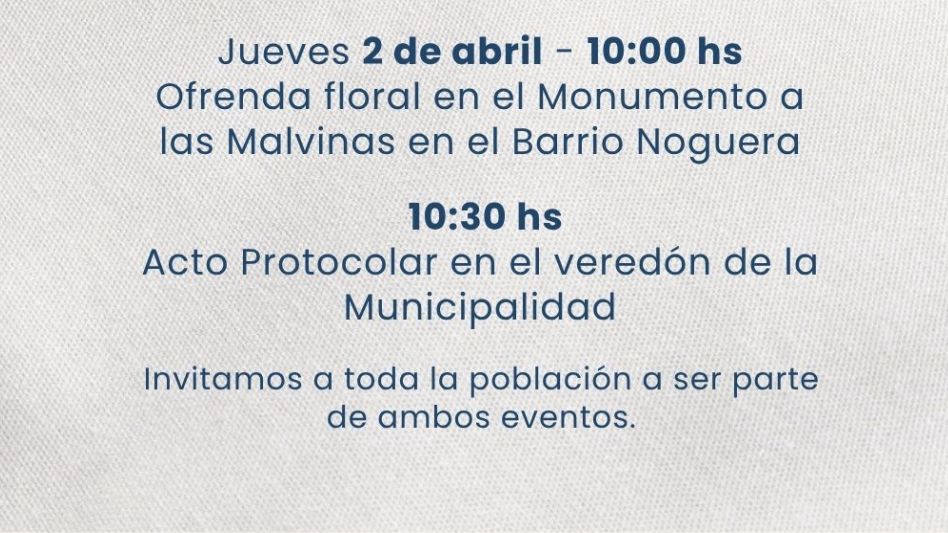 Debido a las precipitaciones registradas en las últimas horas, el Acto Protocolar del Día del Veterano y de los Caídos en la Guerra de Malvinas se llevará a cabo con las siguientes modificaciones: