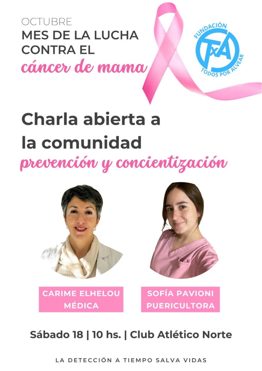 La Fundación Todos por Alvear invita a la comunidad a la charla abierta sobre prevención y concientización del cáncer de mama, en el marco de "Octubre: mes de la lucha contra el cáncer de mama".