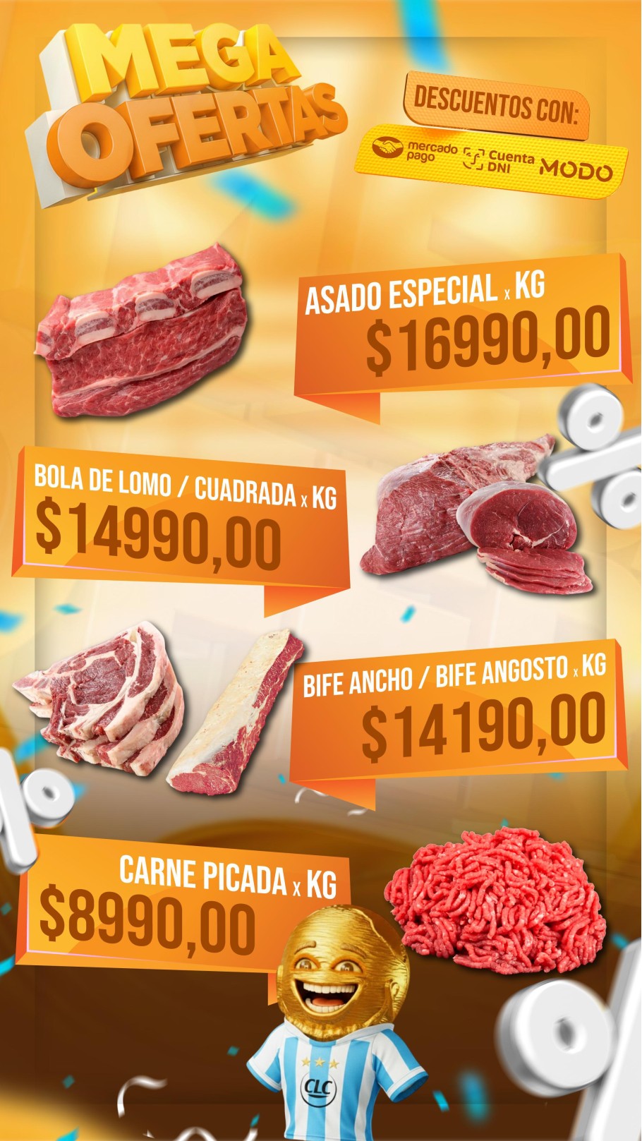 El comercio CLC presentó una serie de "Mega Ofertas" que estarán vigentes durante este viernes, sábado y domingo, con promociones en carnes, almacén y limpieza.