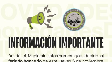 La Municipalidad de General Alvear informa que en el día de la fecha se hizo efectivo el depósito de los fondos para el pago de sueldos de los empleados municipales correspondiente al mes de Setiembre.