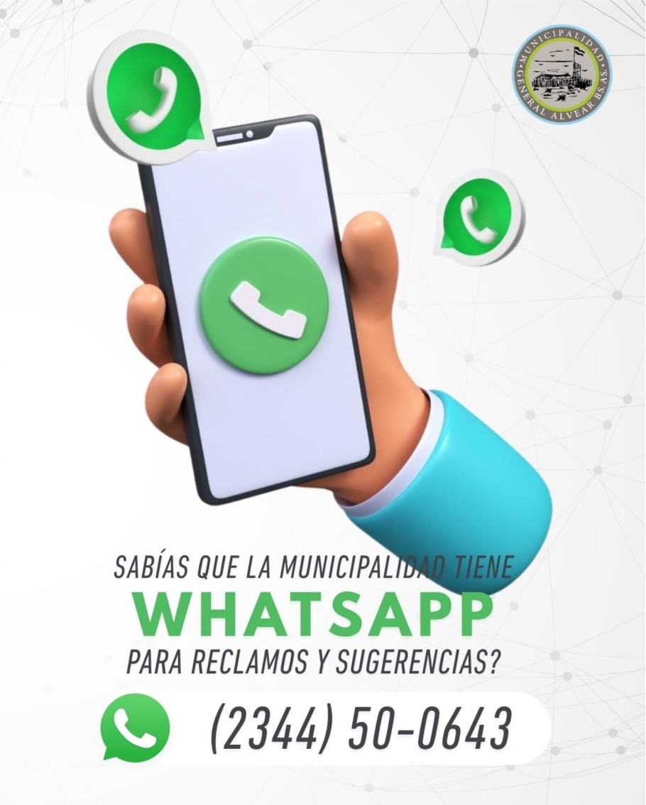 Ahora podés comunicarte de manera más rápida y sencilla con la Municipalidad de General Alvear. Podes enviar tus reclamos o sugerencias por WhatsApp al 2344 50-0643. Agendalo!!
