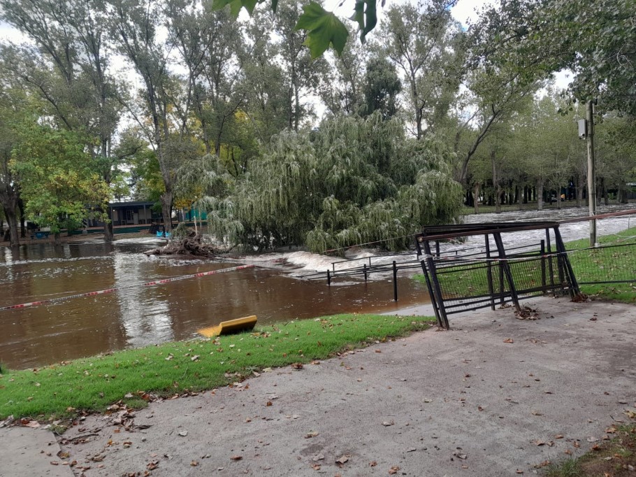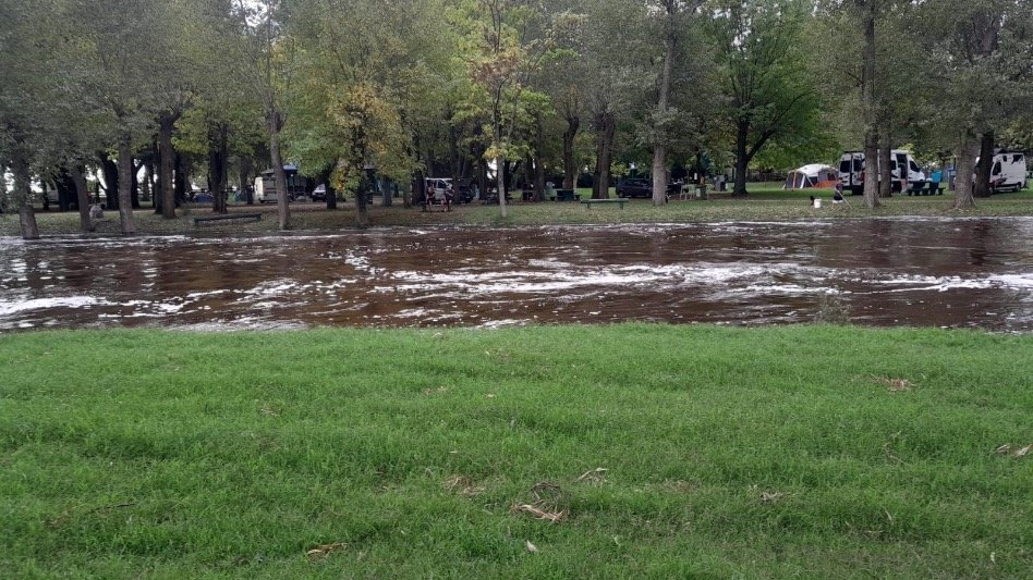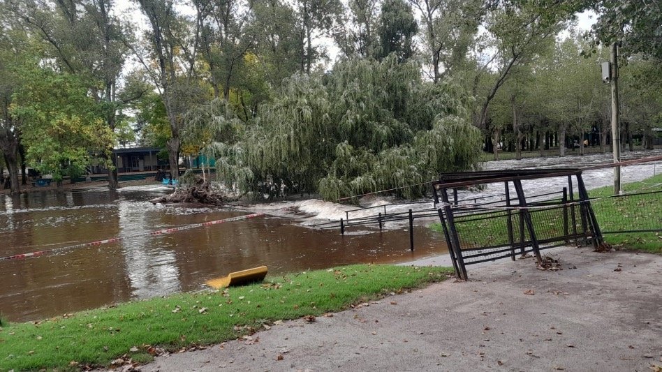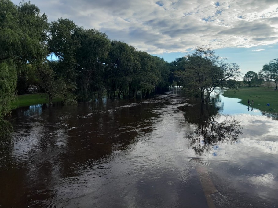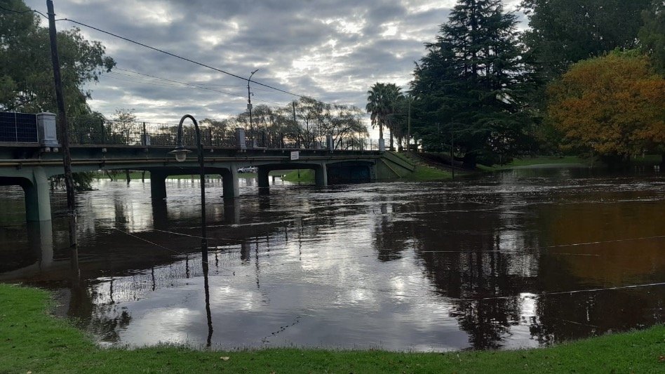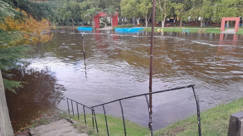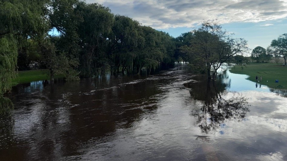 Vecinos registraron, en Tapalqué, una importante crecida del Arroyo Tapalqué, con sectores del parque y zonas cercanas completamente anegadas. Las imágenes, enviadas por Carly Quiroga, evidencian el avance sostenido del agua y la fuerza del caudal, que ya cubre caminos, escalinatas y espacios recreativos.