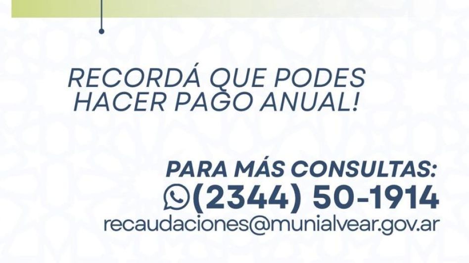 Para más consultas, se puede llamar al (2344) 50-1914 o escribir a recaudaciones@municipalvear.gov.ar.