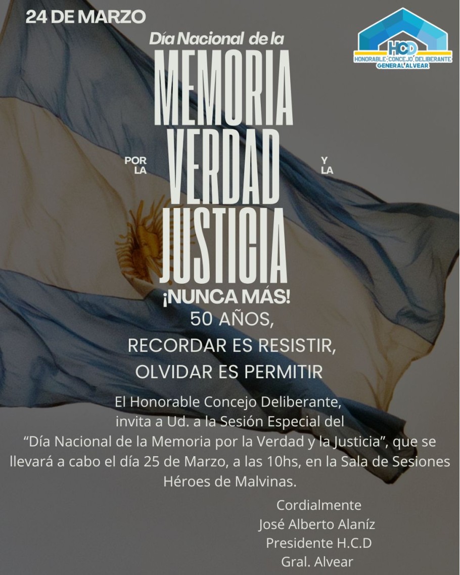 Miércoles 10 horas en la sala de sesiones "Héroes de Malvinas"
