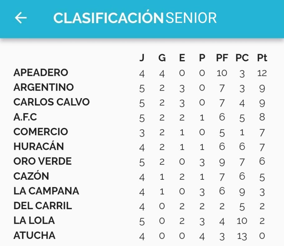 Resultados y posiciones de todas las categorías