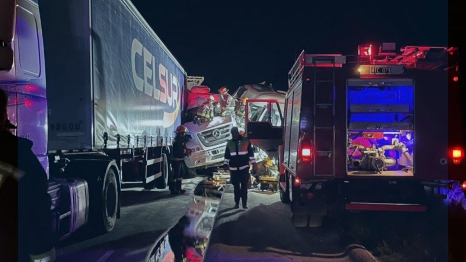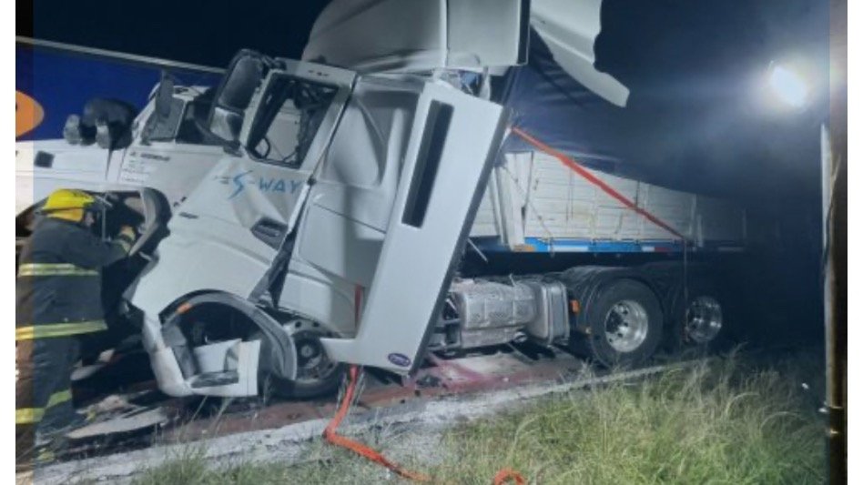 Según se informó, el impacto inicial involucró a un camión Volvo (dominio MNH665), que habría sido colisionado desde atrás por un camión Mercedes Benz (dominio OCE324). En este último vehículo viajaba un acompañante de 58 años, quien quedó atrapado en el habitáculo y perdió la vida a raíz de las graves lesiones sufridas.