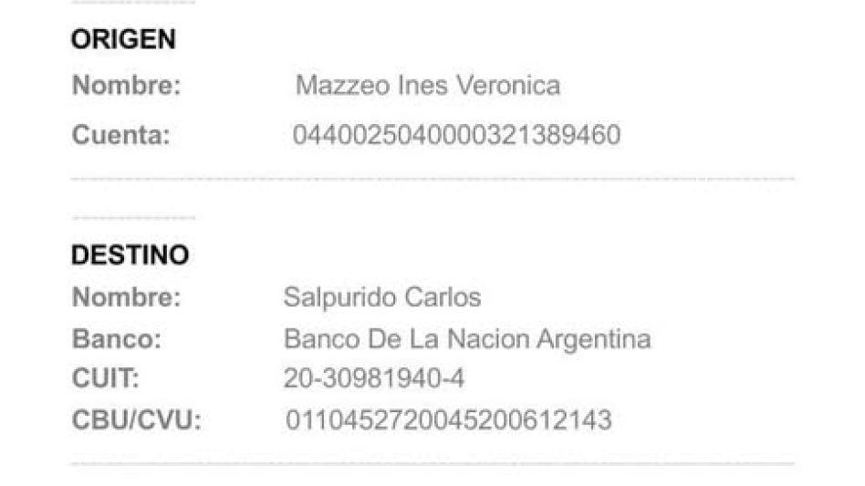 La transferencia es a nombre de MAZZEO INES VERÓNICA.