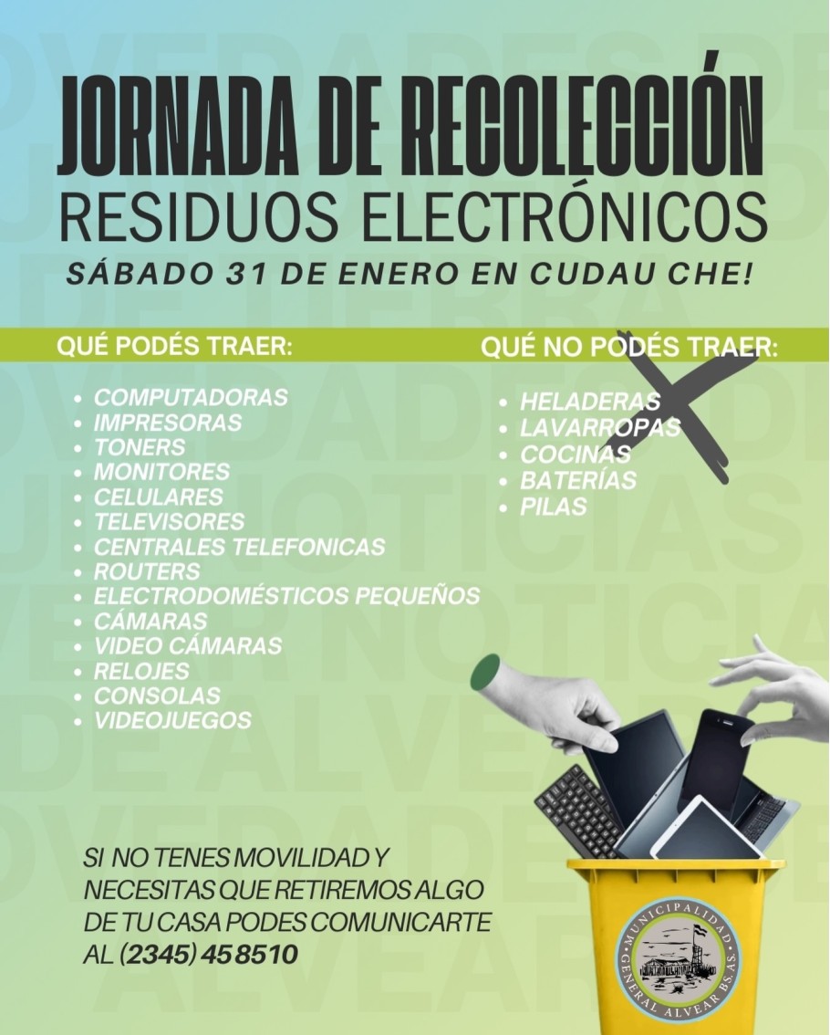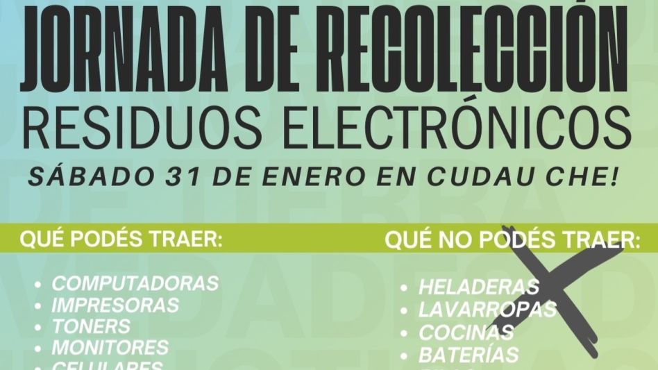 El sábado 31 tenes una cita. Acercate a Cudau Che y traé todos los electrónicos que tengas en desuso! Recordá: reciclar no es tirar. Los residuos electrónicos tienen un destino responsable. Sumate a la jornada!