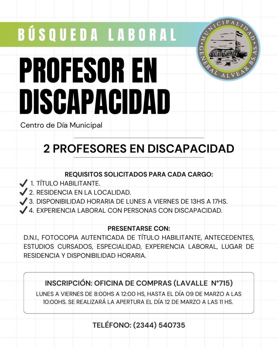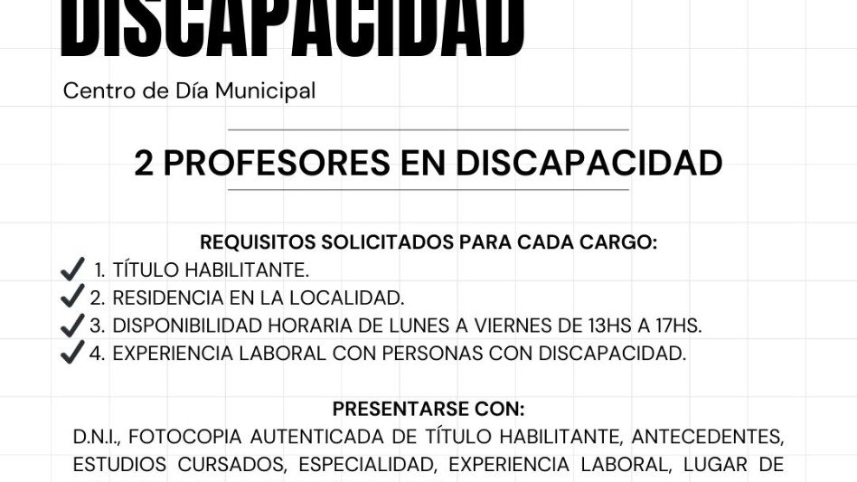 Dos Acompañantes Terapéuticos y dos Profesores en Discapacidad.