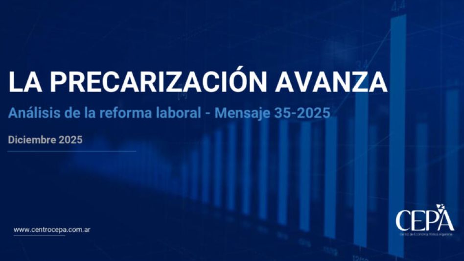 Un informe del CEPA titulado "La precarización avanza: análisis de la reforma laboral" alertó sobre el impacto negativo que tendría el proyecto impulsado por el Gobierno nacional en los derechos de los trabajadores, el sistema de seguridad social y las finanzas públicas. El documento sostiene que la iniciativa no moderniza el mundo del trabajo, sino que profundiza la precarización laboral y debilita las herramientas de protección colectiva.