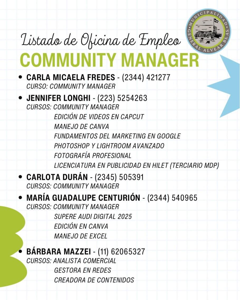 La Oficina de Empleo nos comparte el listado de Community Manager que se