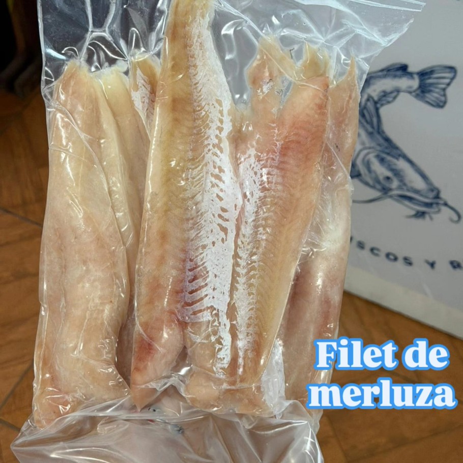 Merluza, pollo de mar, salmón rosado, trucha, lenguado, abadejo, corvina rubia, rabas, langostinos, mariscos, medallones de pollo y merluza, papas fritas, y más