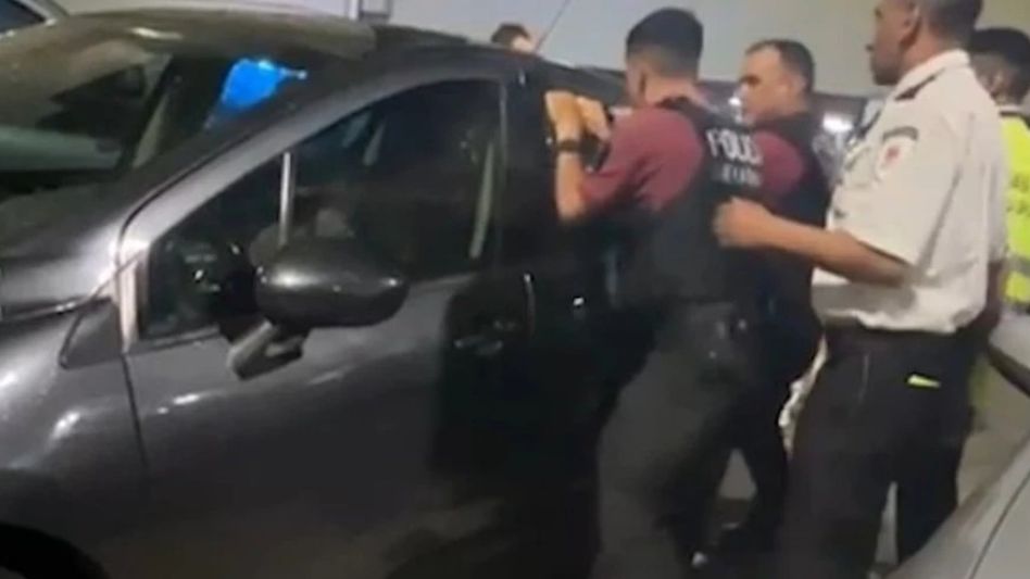 "Se procede a romper el vidrio", se escucha decir en el video a una mujer policía, mientras un compañero comienza a golpear la puerta delantera derecha con una herramienta metálica y consigue abrir el vehículo.