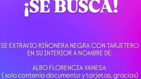 Se perdió una billetera con documentación y dinero que sería lo de menos pero , valiosa la documentación a nombre de Waldemar Leiva . Podría haber sido en el trayecto calle Alem altura 743 hasta 1231 y mármol y siguiendo por sarmiento hasta Lavalle llegando a Alem 743 nuevamente.