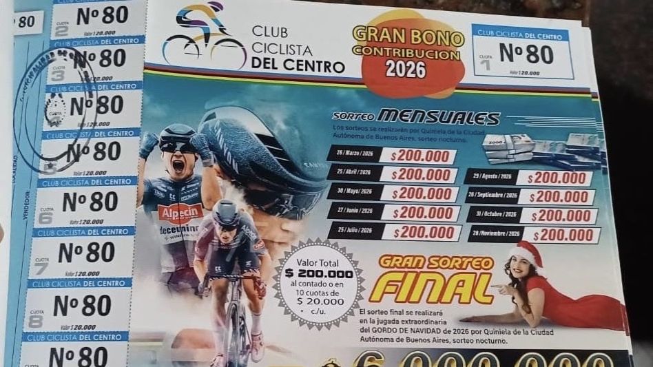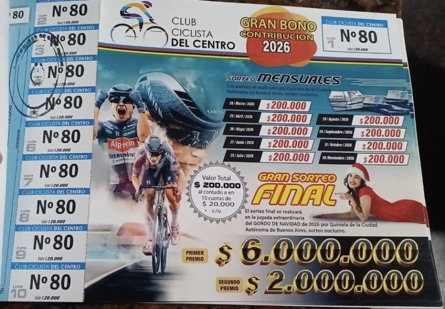 Se llevó a cabo un nuevo sorteo del bono contribución 2026 del Club Ciclista. En esta oportunidad, el número 80 resultó favorecido y el ganador fue Sergio Papavero, quien se llevó el premio de $200.000.