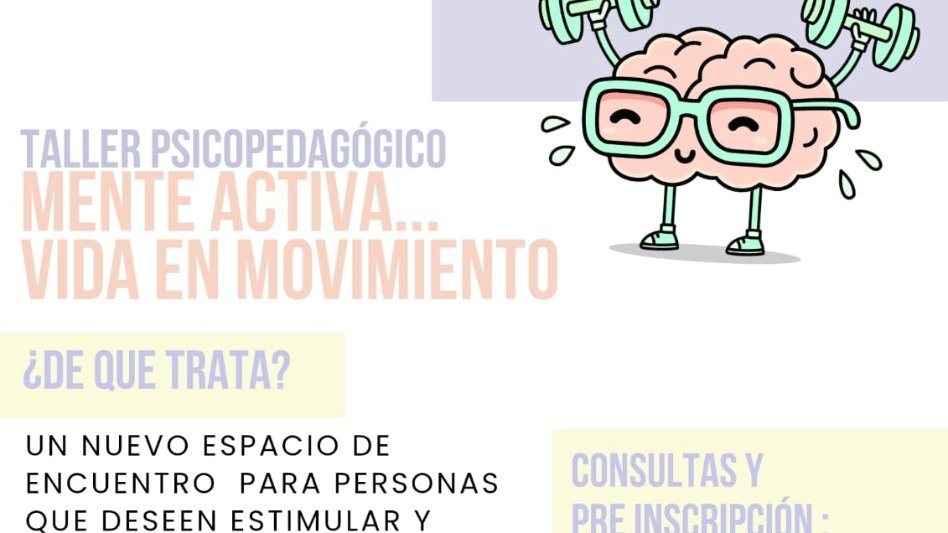 Hola, somos Sofia Escande y Agostina Sosa, psicopedagogas. A partir de la segunda semana de febrero vamos a iniciar el taller "Mente activa... vida en movimiento", en "Consultorios CreSer" ubicados en calle Lavalle 782, destinado a personas a partir de 50 años que deseen estimular y fortalecer la memoria, atención, el pensamiento y la creatividad.