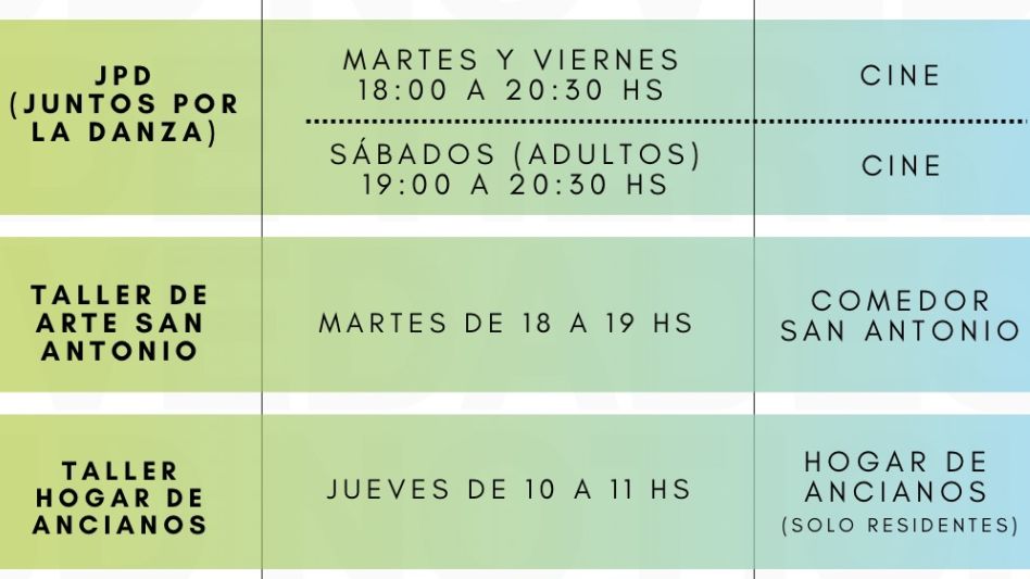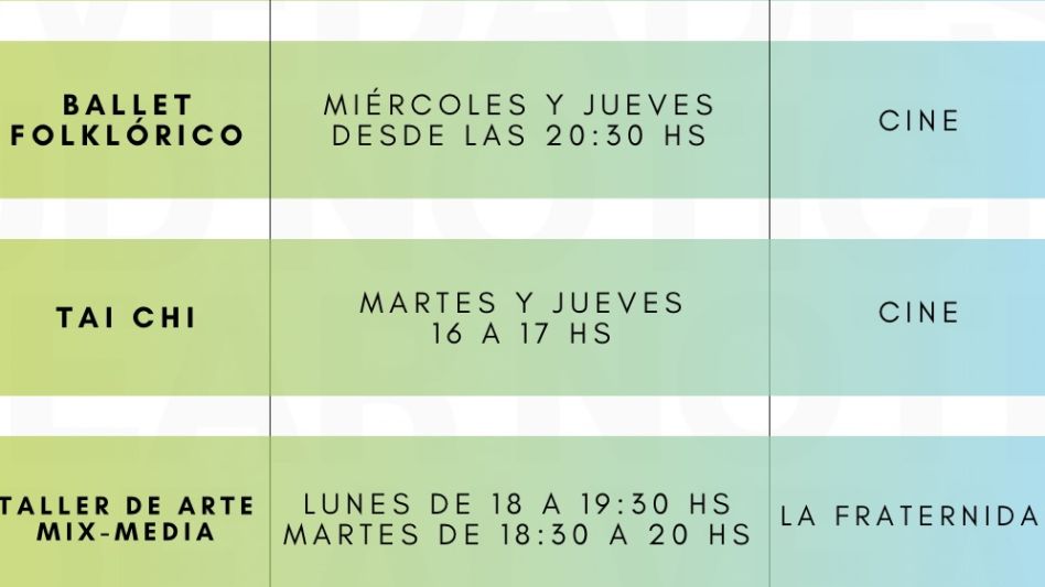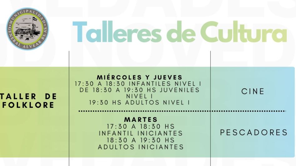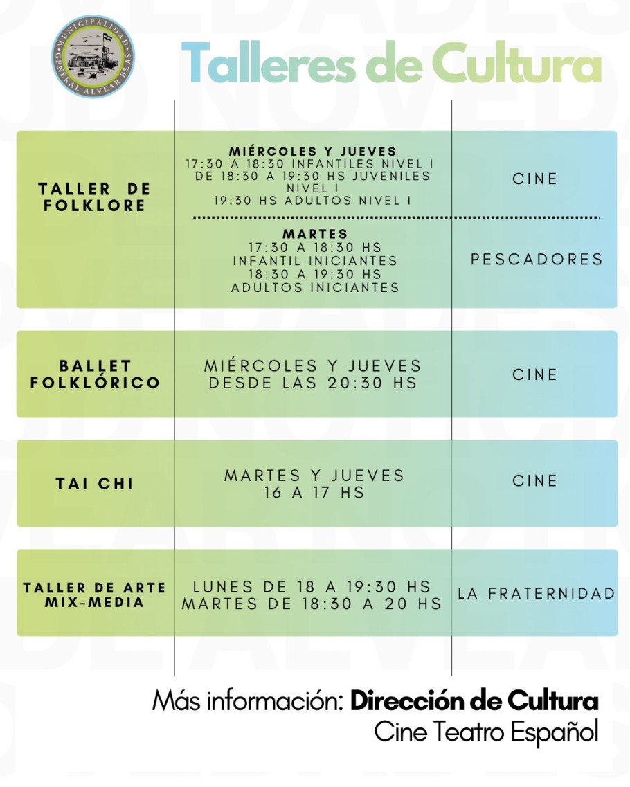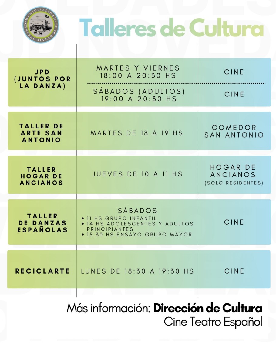 Estos son los talleres que la dirección de Cultura nos ofrece para este año. Son variados, para todas las edades y están muy buenos! Para más información podes acercarte al cine.