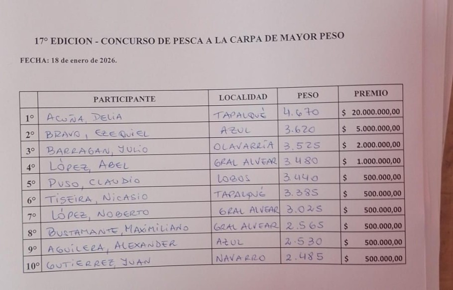 Alvearenses ingresaron en zona de premios: Abel Lopez 4to, Norberto Lopez 7mo, Maximiliano Bustamante 8vo