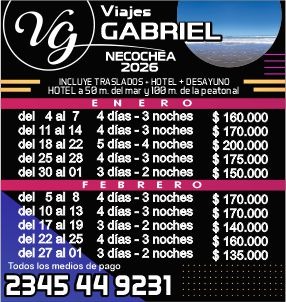 Viajes Gabriel te lleva a Necochea en la temporada 2026. Incluye Traslados, Hotel y Desayuno. Elegí tu fecha y reserva con tiempo.